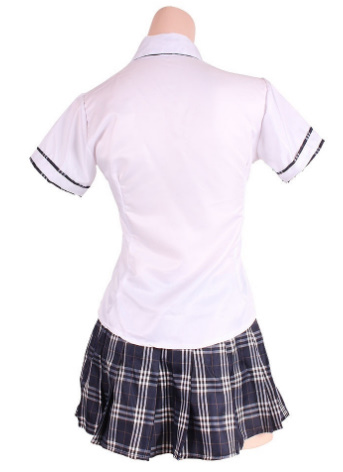 男の子が恋したくなるモテコーデの定番制服! 光沢感のあるブラウスの袖と左胸にもネイビーチェック柄でお洒落感アップ。
