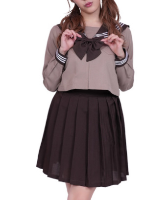 上品「ブラウンカラー」 で落ち着いた色味で甘さに加えて上品さを演出。 「綺麗なシルエット」 しっかりとした作りで、本格的なセーラー服 ミニスカートは美脚におまじない! 日常使いはもちろん、ハロウィン・文化祭・パーティーにピッタリ!